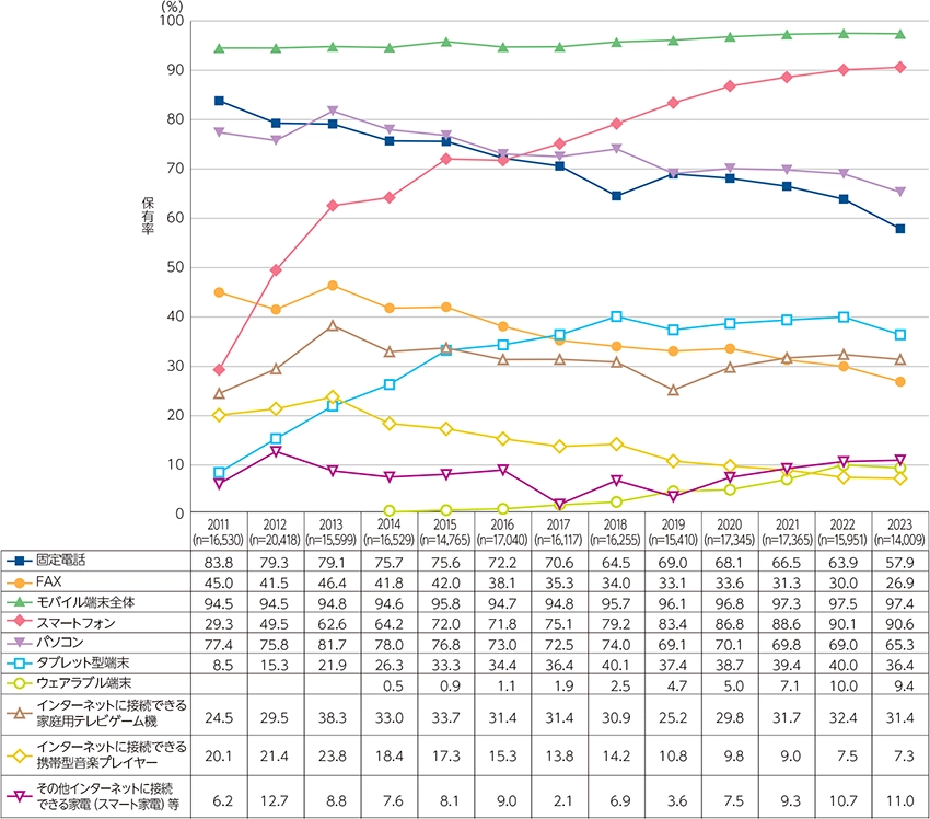 2010年のiPhone発売以降、急速にスマホ利用者が増え90%程度の普及率となっています。10人に9人はスマホを利用しており、IT端末を日常的に持つユーザーをターゲットとすることは高い可能性を秘めているといえます。