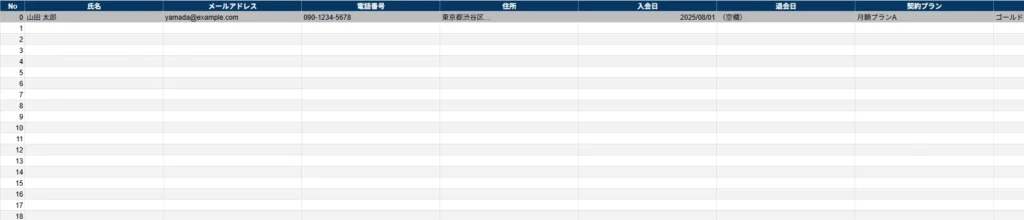 会員管理を始める際に便利なのが、無料で使えるExcelやGoogleスプレッドシートのテンプレートです。