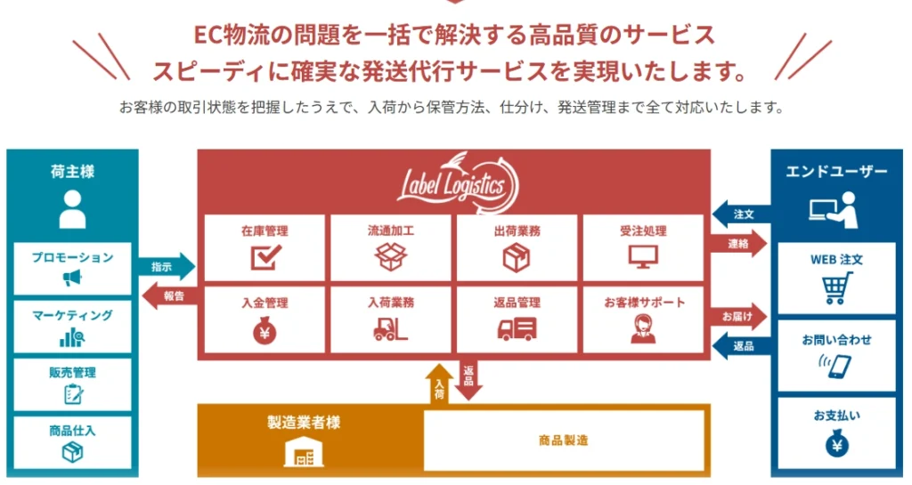 発送や物流に関しては、梱包・配送手配・物流管理を代行会社に任せられます。これにより、注文から顧客の手元に届くまでの流れをスムーズにし、迅速な対応を実現できます。