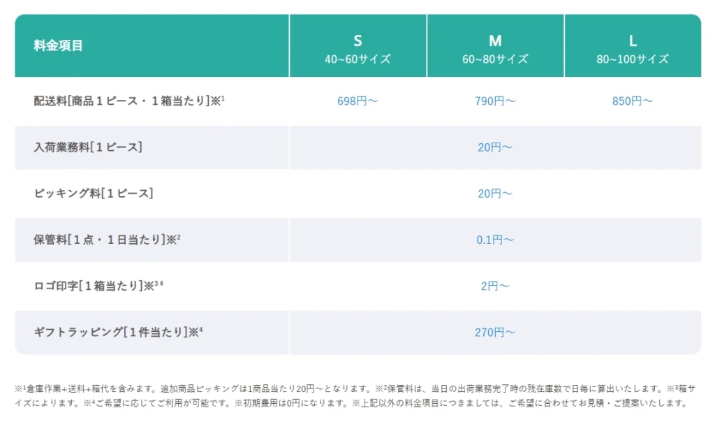 在庫・物流管理 | 月額5万円~20万円 | 在庫管理、出荷業務、返品対応 |