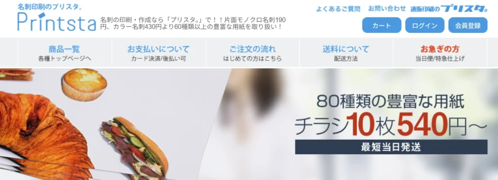 | ラクスル | 3,445円(税別) | 全国送料無料 | 平日 9:00~22:00 土日祝 13:00~18:00 | クレジットカード 銀行振込後払い |