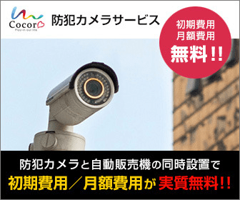 ココロアソビは、自動販売機と一緒に防犯カメラと一緒に設置することでほぼ無料で設置できるプランを提供しています。店舗からマンションまで幅広いニーズに答えられます。