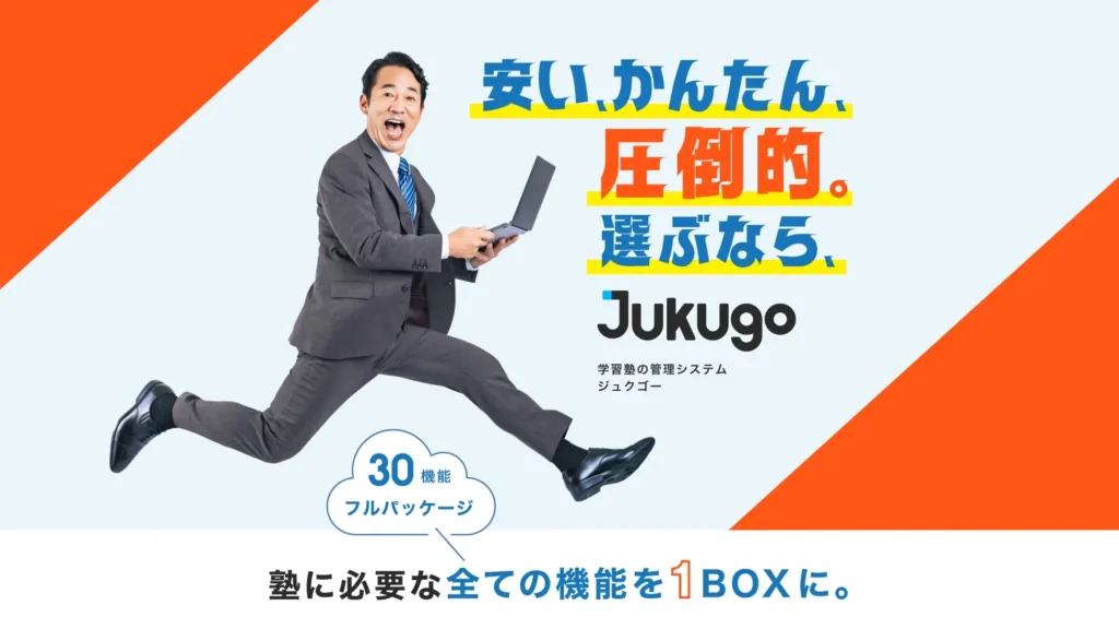 Jukugoは学習塾向けに開発されたクラウド型の管理システムです。講師や生徒、保護者間の連絡を一元管理でき、チャットやお知らせ、指導報告書などの機能を搭載しています。出欠管理や予約管理、カレンダー、請求書発行、クレジット決済、生徒の入退室管理、ポイント付与、コース管理、アンケートなど、塾業務に必要な機能が揃っています。料金は受講生1人あたり月額100円と非常に低コストで、業界最安水準を実現しています。さらに機能は自動でアップデートされ、チャット相談やオンラインマニュアルによる無料サポートが提供されるため、導入後の不安も少なくスムーズに運用できます。