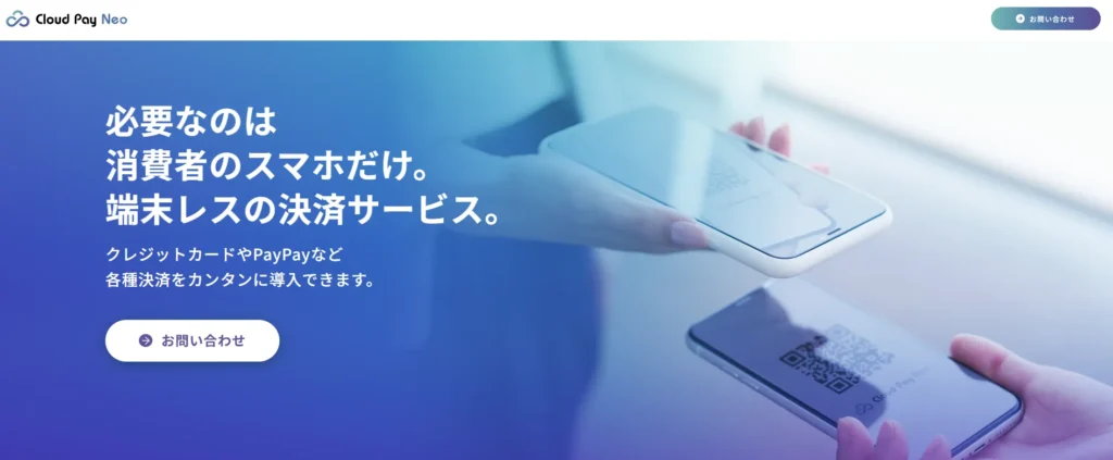 Cloud Pay Neo(クラウドペイネオ)は、決済端末が不要な「端末レス型」キャッシュレス決済サービスです。