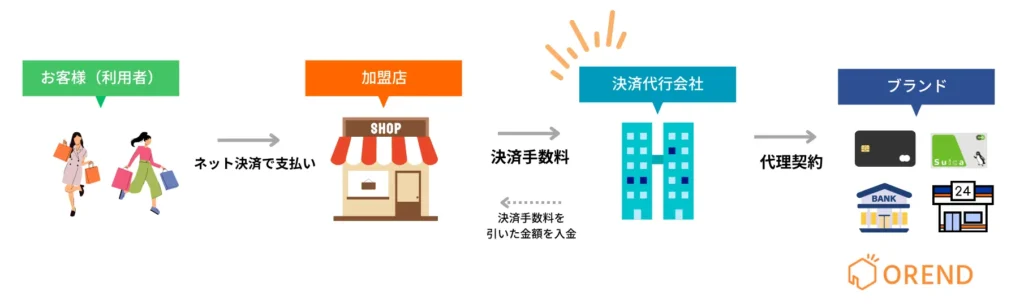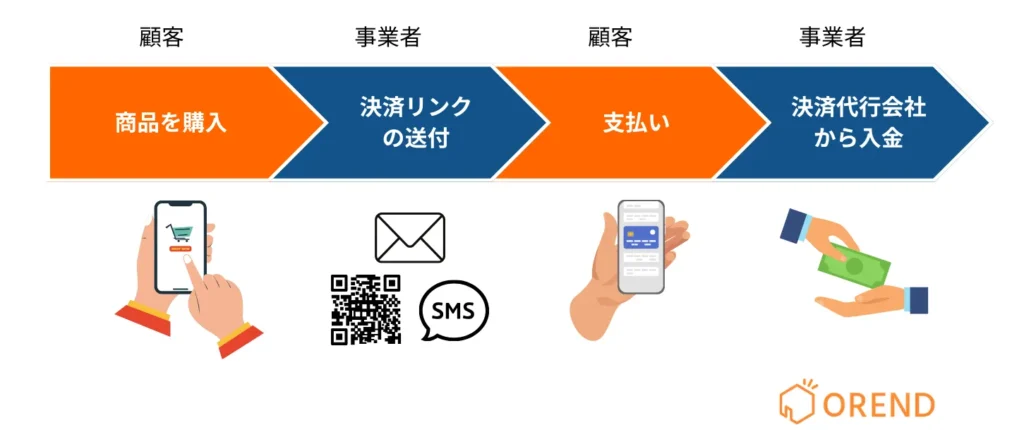 決済代行会社が代金の立替えを行い消費者宛てに、請求書や払込票・決済リンクなどを通じてあとで代金回収を行うことで支払いが完了します。
