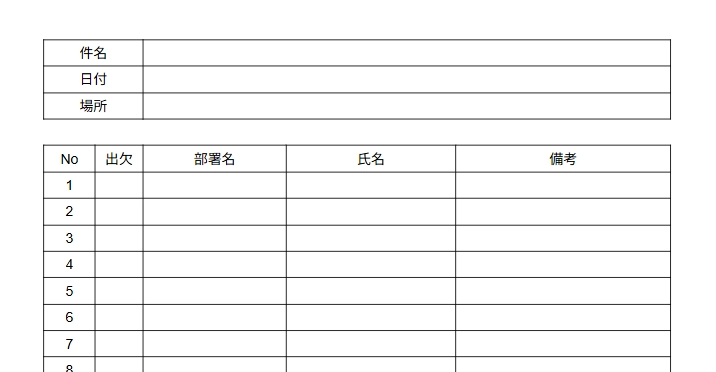 - エクセル2010、2013などで簡単に利用できる出欠管理票