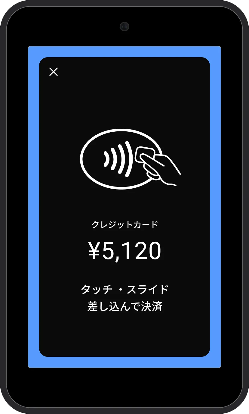 クレジットカード・QRコード・電子マネー・タッチ決済など様々な支払いに対応しています。1日充電が持つためテーブル決済や屋外決済にもおすすめで、タッチパネルでPOSレジの操作や、電子レシートの送付も可能です。
