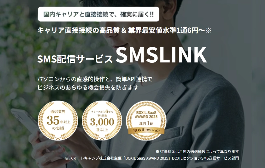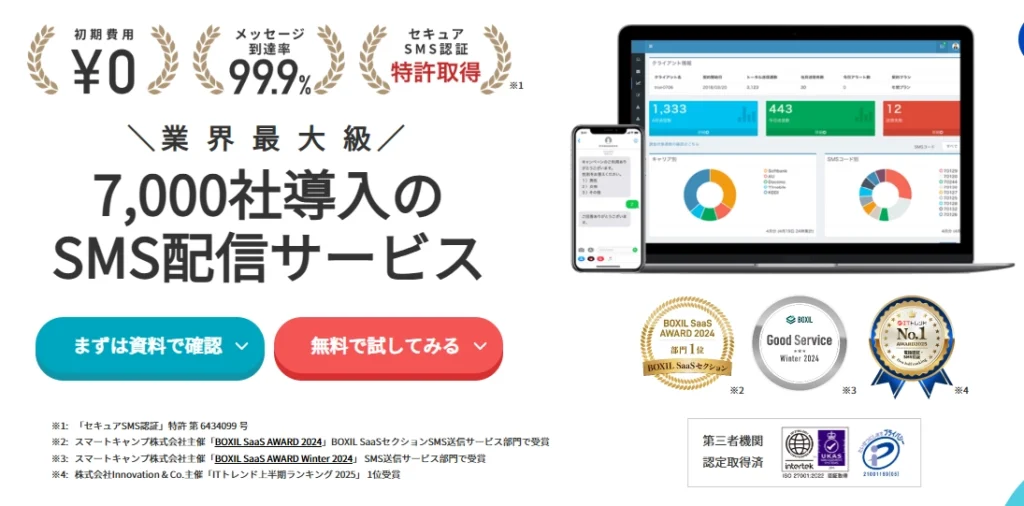 セキュリティと到達率を最優先する場合は、通信キャリア直収型を採用した高信頼サービスがおすすめです。本人確認コードやワンタイムパスワードを扱うため、安定した配信品質が不可欠です。