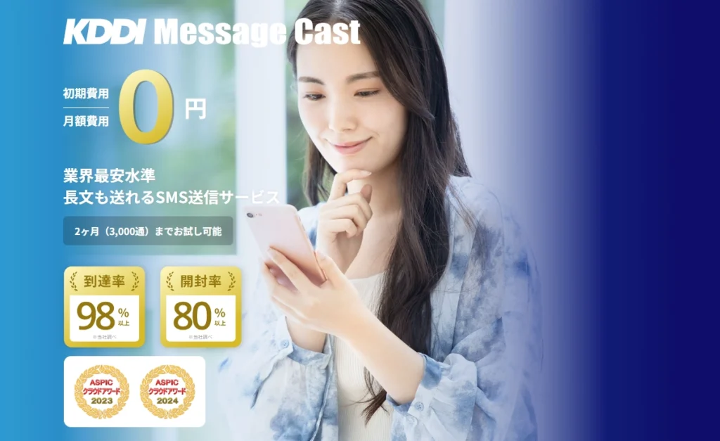 | KDDI Message Cast | KDDIとSupershipが提供する法人向けサービス。 大量配信にも対応。 |