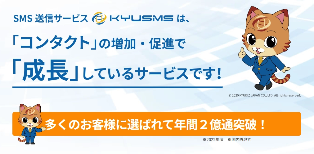 株式会社KYUBIZ JAPANが提供する「KYUSMS」は、国内外のキャリアに対応したSMS送信サービスです。