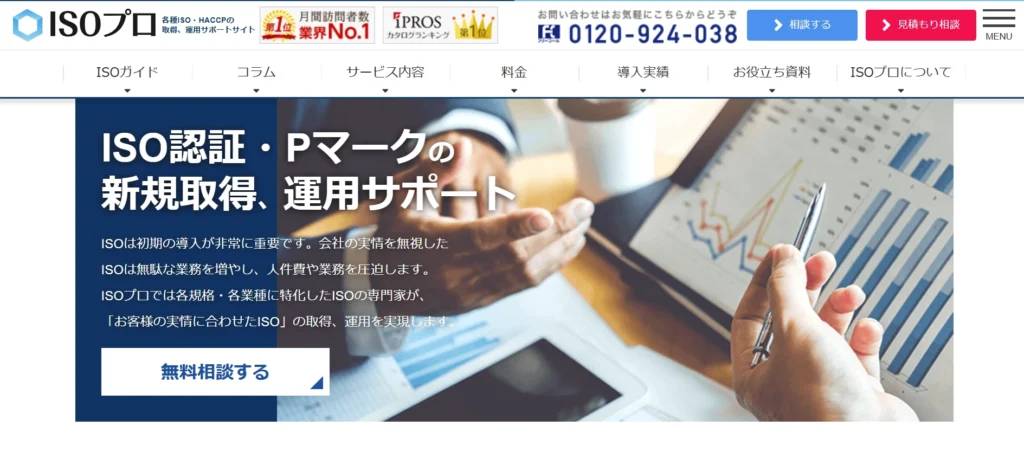 | ISOプロ | ![]() | 月額4万円〜 | 最短6ヶ月 | 対応回数無制限、全国70名以上 | 1,500件以上 | 100%合格保証(返金) |