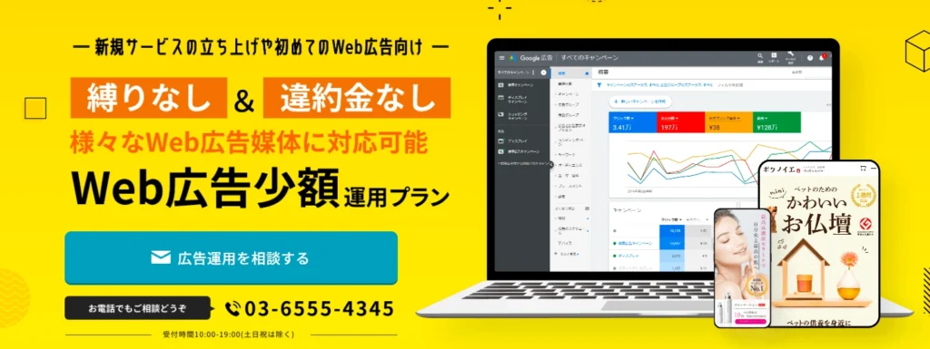 | 運用手数料 | 広告費の20%(下限は10万円) |