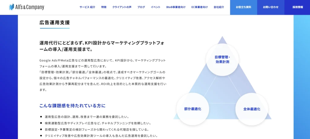 広告の戦略設計から効果検証までを一括して任せられるため、専門知識がなくても効率的に成果を得られるのが大きな特徴です。