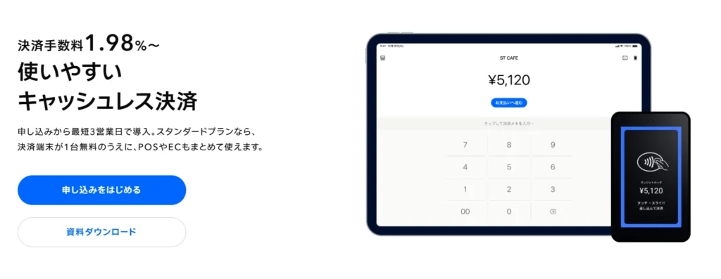 | スタンダードプラン | 1.98% | 0円(1台目) | 3,300円 | 中小企業+年間決済額3,000万円未満+審査通過 |