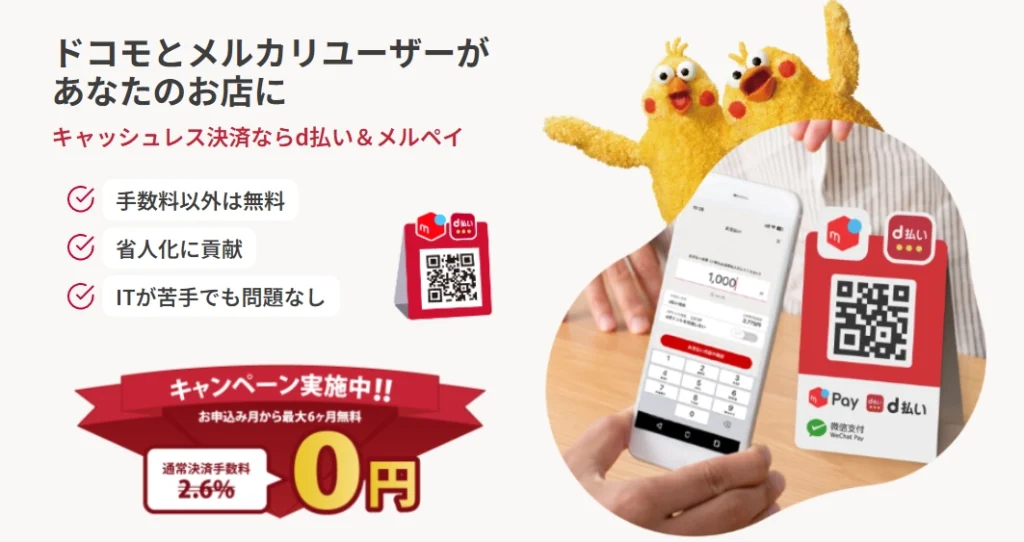 d払いは、d払いユーザーだけでなく、メルペイユーザーへの訴求にもつながるのが強みです。対応できる利用者層が広がることで、取りこぼしを減らしやすくなります。
