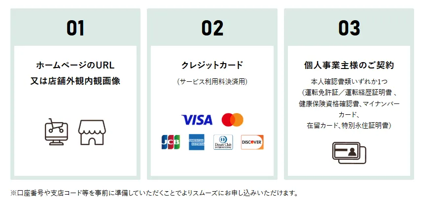 - 直近1年間のVisa/Mastercard売上が2,500万円以下であること